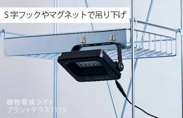 プラントテラス1115は小型で軽量なため、置くだけで簡単に使える植物育成ライトです。